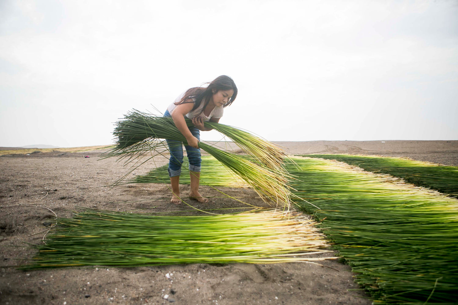 Junco reeds are sustainably harvested in small batches along the riverbanks of northern Peru, where they’re sun-dried and carefully prepared by hand. This thoughtful, low-impact process supports traditional techniques passed down through generations of artisans.