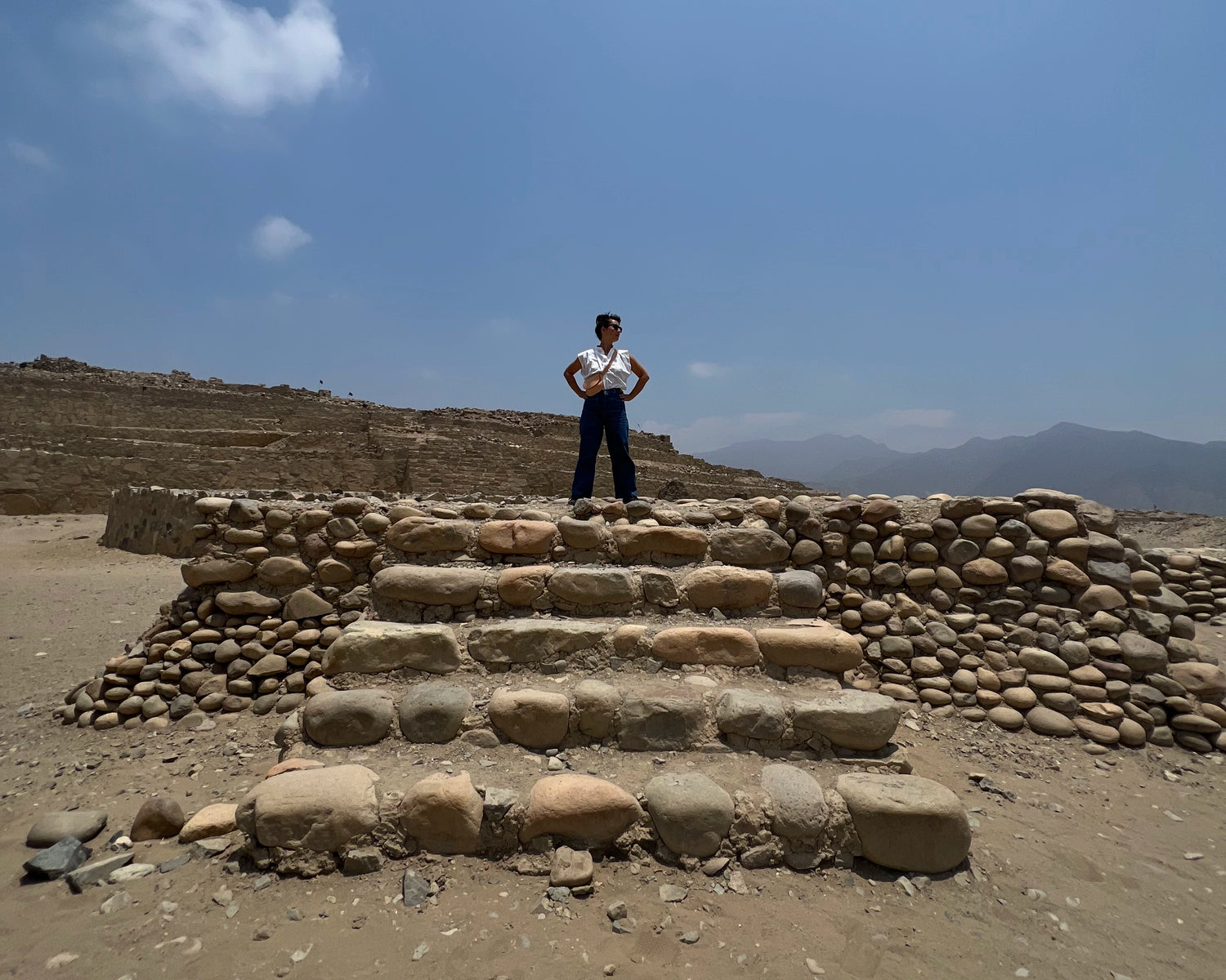 Our Caral Collection is inspired by the oldest discovered civilization in the Americas, Caral-Supe. The ruins of this once thriving city sit on the arid desert coastline of northern Peru. Textured remains of an elaborate monochrome complex overlook endless stretches of mineral rich hills that roll into the sea.
