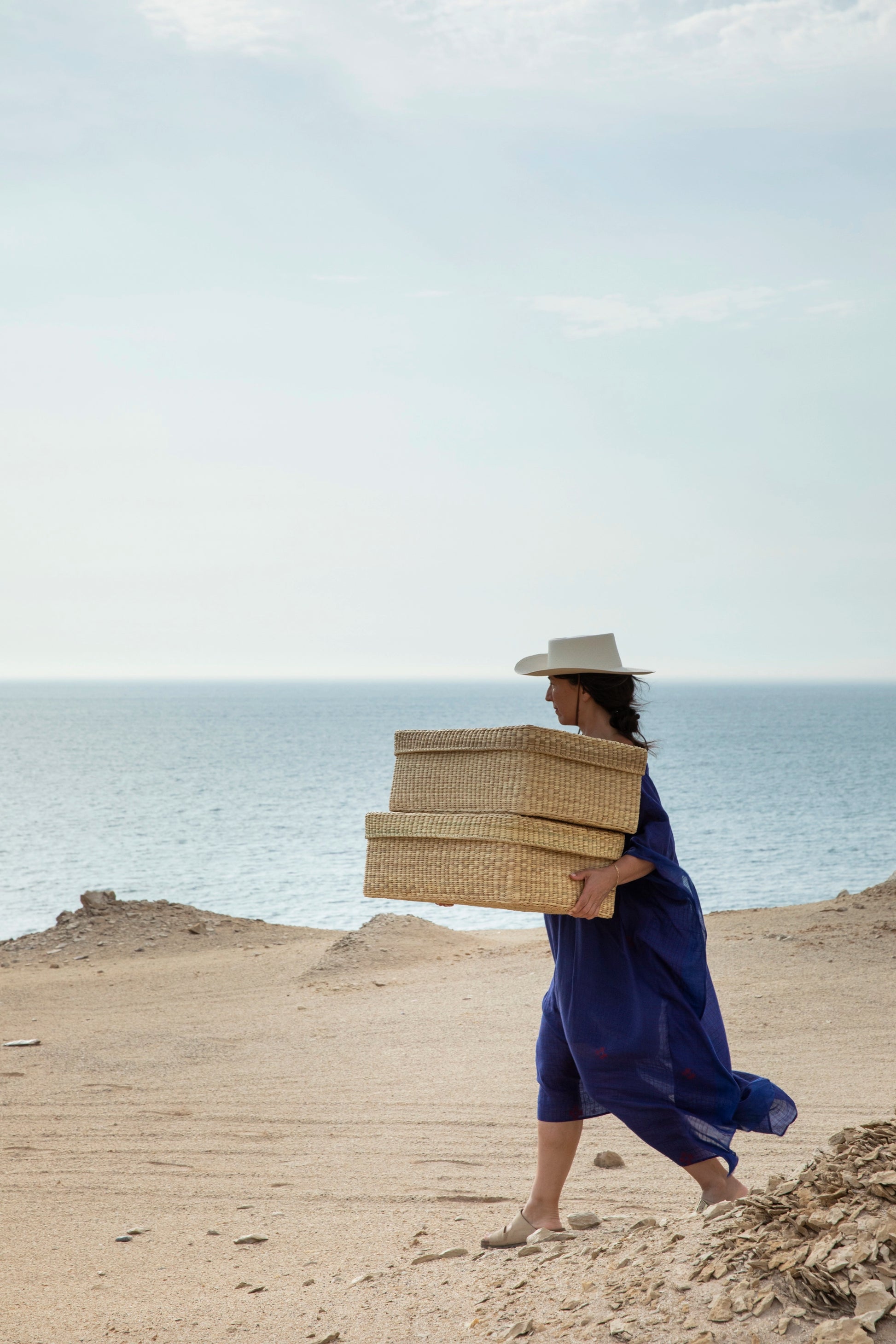 This basket is woven by hand from Junco reeds harvested from remote farmland. Reeds are laid to dry in the sun before artisans use intricate weaving patterns passed down through generations of Peruvian makers. Made by season in small, intentional batches.
